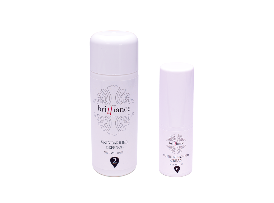 ハリーのブリリアンス(Brilliance)スキンケア製品群のブリリアンススーパーリカバリークリームと、ハリーのブリリアンススキンバリアディフェンスは、補完的なスキンケア製品で、レーザー治療後の肌の回復にお勧めです。ハリーのスーパーリカバリークリームには、回復を促進するためのビタミンKとアルニカ抽出物が含まれています。ハリーのブリリアンススキンバリアディフェンスは、鎮静作用と抗炎症作用で知られている、カモミール、カンゾウ、マンサクが含まれており、こもった熱を冷却し、レーザー術後の赤みを軽減します。